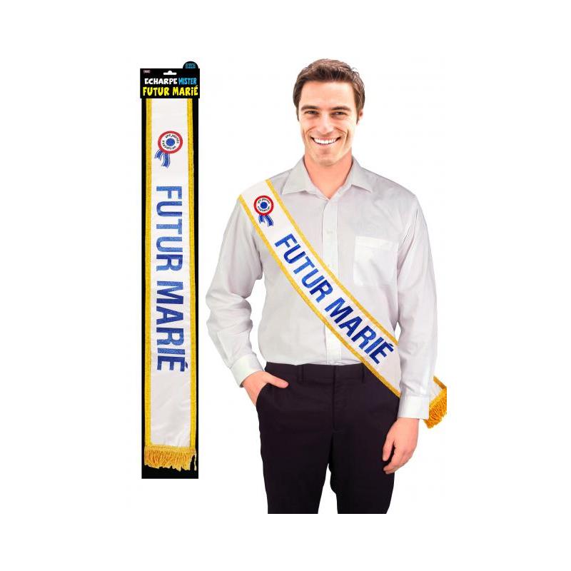Écharpe en tissu avec autocollant argenté pailleté "Enterrement de vie de garçon".