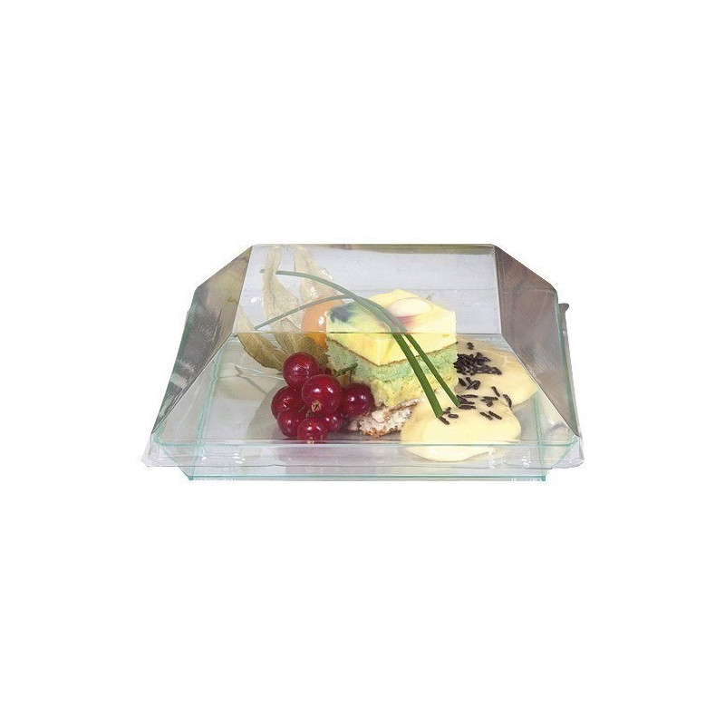 Couvercle pour assiette en plastique PS transparent 13 cm. Permet de protéger les aliments en recouvrant l'assiette.